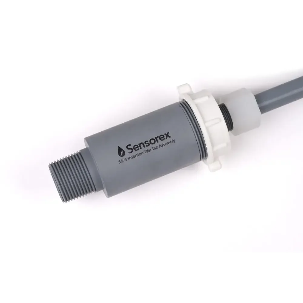 Les utilisateurs installant dans de grands réservoirs, de grosses canalisations de process et des conduits de lavage apprécieront ce kit d'assemblage d'insertion par piquage. Une profondeur d'insertion réglable jusqu'à 12” garantit que la sonde est dans le flux pour de meilleurs résultats. Conçu en CPVC pour un coût plus abordable que les modèles en acier inoxydable onéreux, l'ensemble d'insertion par piquage S675 convient à la plupart des applications de traitement de l'eau et des eaux usées. Intègre une compensation automatique de température (ATC) optionnelle avec 1000Ω RTD. Fourni avec un câble de 10 foot. Le kit inclut également (1) cartouche pH S656CD pour surface plane. La vanne à bille BV-1 (vendue séparément) facilite le retrait du système sans nécessité d'arrêt.