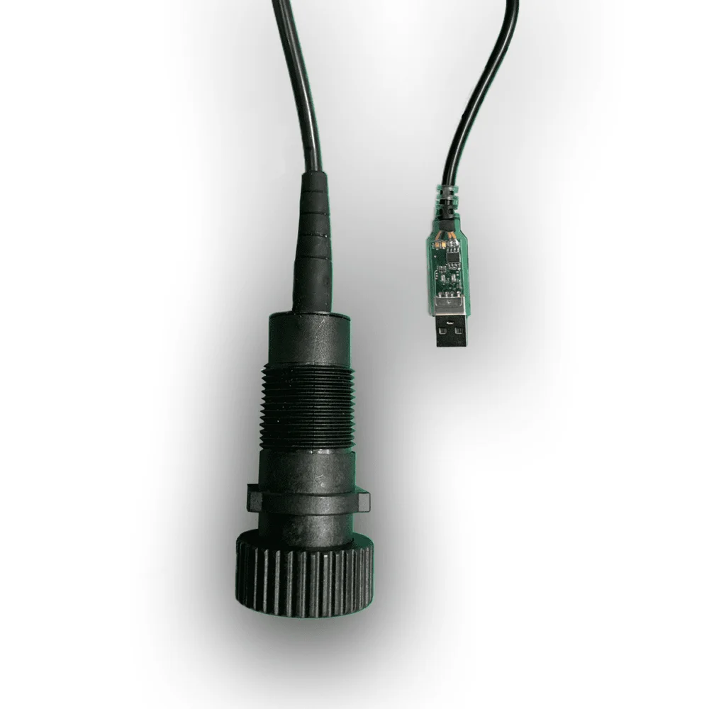 L'adaptateur d'étalonnage (Réf. S857) est utilisé pour étalonner les capteurs Modbus. Il se visse à l'arrière du capteur intelligent et se connecte à un ordinateur via une interface USB.