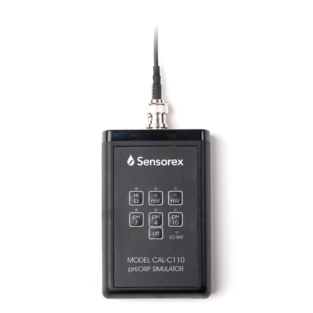 I circuiti di misura pH e ORP possono essere difficili da diagnosticare se non si hanno gli strumenti adeguati. Il nostro simulatore CAL-C110 imita il segnale di un sensore pH o ORP perfetto. Non è necessario gettare sensori funzionanti quando il problema potrebbe riguardare i cavi di interconnessione o lo strumento pH/ORP. Il simulatore costa meno della maggior parte dei sensori pH o ORP e può facilmente ammortizzarsi la prima volta che si considera di eliminare un sensore ancora buono. Permette all'utente di identificare se la causa del problema è il sensore, il cavo, il misuratore, il preamplificatore o il controllore.